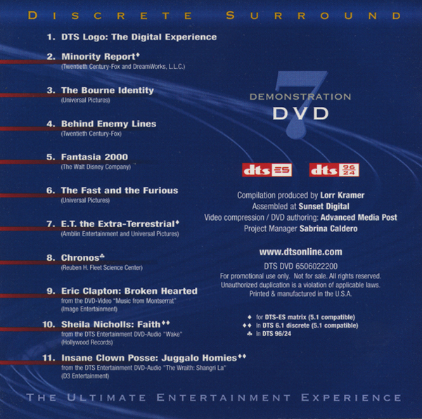 HOME > ニュース > AV&ホームシアターニュース 第3弾はN0.7だ! 100名にDTSデモディスクNo.7を抽選でプレゼント! 2005年04月11日 前の写真へ DTS DEMONSTRATION DVD No.7 ジャケットのウラ 前の写真へ この写真の記事へ 関連リンク 月刊AV REVIEW編集部 DTS DEMONSTRATION DVD No.9(最新版)の詳細