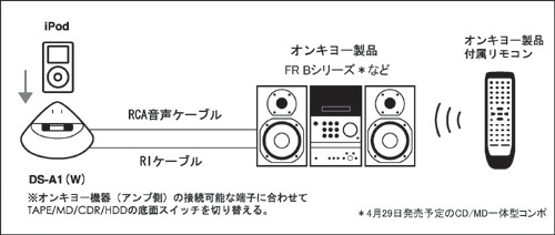 オンキヨー、コンポなどのリモコンで操作できるiPod専用ドック