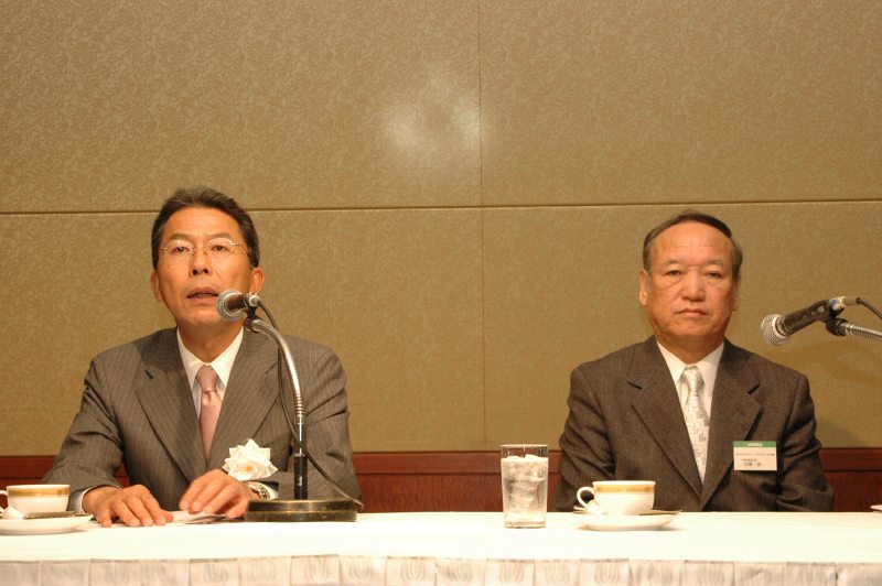 HOME > ニュース > AV&ホームシアターニュース NEBA、正副会長の記者会見を開催−「NEBAに代わる何らかの仕組みが必要」 2005年04月21日 記者会見を行う岡島昇一会長(左)と加藤修一副会長(右) この写真の記事へ 関連リンク NEBAホ-ムペ-ジ