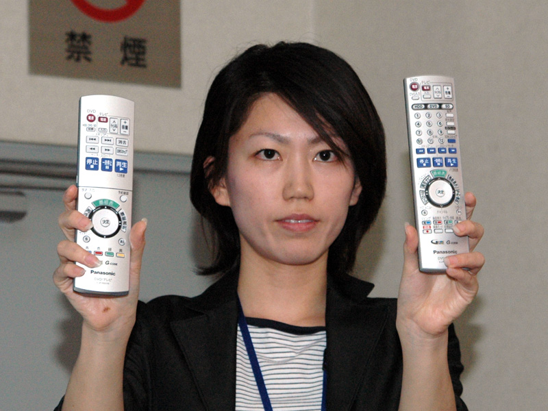 よりシンプルになったハイビジョンDIGAのリモコン(左)と従来のリモコン