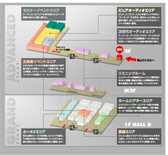 HOME > ニュース > AV&ホームシアターニュース 「A&Vフェスタ2005」今年も開催決定! 記者会見で詳細が明らかに 2005年07月05日 前の写真へ 次の写真へ 会場マップ。2つのステージに分けられている 前の写真へ 次の写真へ この写真の記事へ 関連リンク 「A&Vフェスタ2005」公式サイトはこちら 昨年行われた「A&Vフェスタ2004」のPhile-web特設ペ-ジ