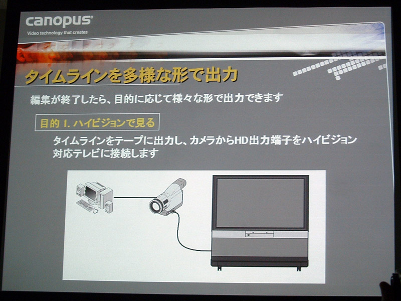 HOME > ニュース > AV&ホームシアターニュース ハイビジョン映像を手軽に編集できる「EDIUS 3 for HDV」が明日発売 2005年07月06日 前の写真へ 次の写真へ 編集した映像はカメラに書き戻してテレビで見ることも可能 前の写真へ 次の写真へ この写真の記事へ 関連リンク Phile-webニュ-ス[カノ-プス、HDV対応編集ソフト「EDIUS 3 for HDV」を発表] 本製品の詳細