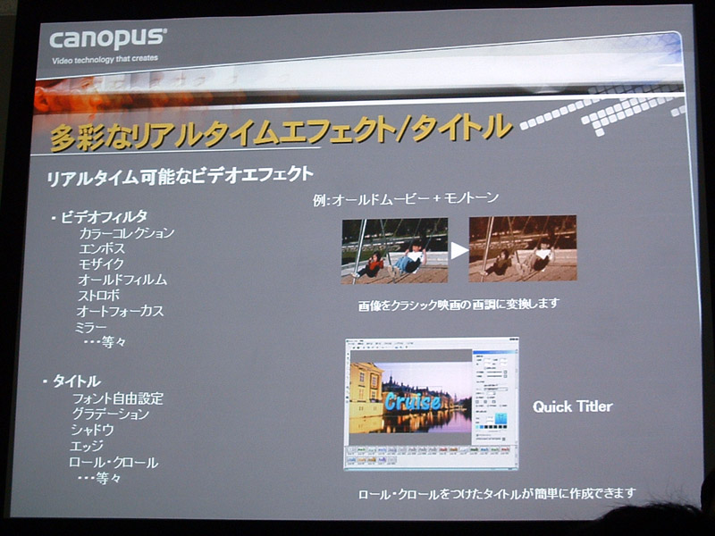 HOME > ニュース > AV&ホームシアターニュース ハイビジョン映像を手軽に編集できる「EDIUS 3 for HDV」が明日発売 2005年07月06日 前の写真へ 次の写真へ 様々なエフェクトを用意 前の写真へ 次の写真へ この写真の記事へ 関連リンク Phile-webニュ-ス[カノ-プス、HDV対応編集ソフト「EDIUS 3 for HDV」を発表] 本製品の詳細