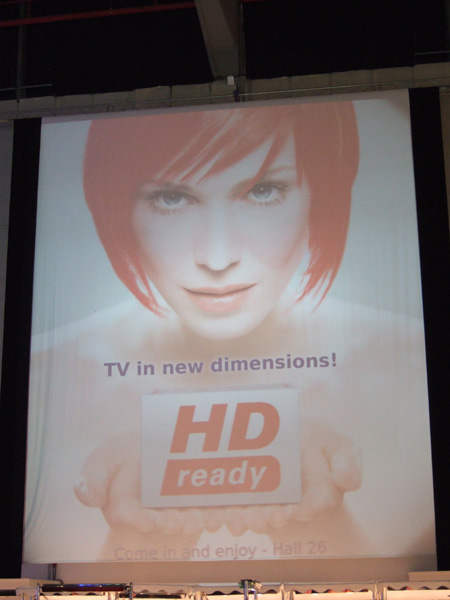 HOME > ニュース > AV&ホームシアターニュース <IFA2005レポート>欧州の「ハイビジョン」への関心は着実に育っている 2005年09月06日 前の写真へ IFA2005のイベントサイドもイメージキャラクターのMISS IFAを使って「HD ready」のロゴマークをアピールする 前の写真へ この写真の記事へ 関連リンク IFA2005 公認 日本語サイト IFA2005レポ-ト一覧