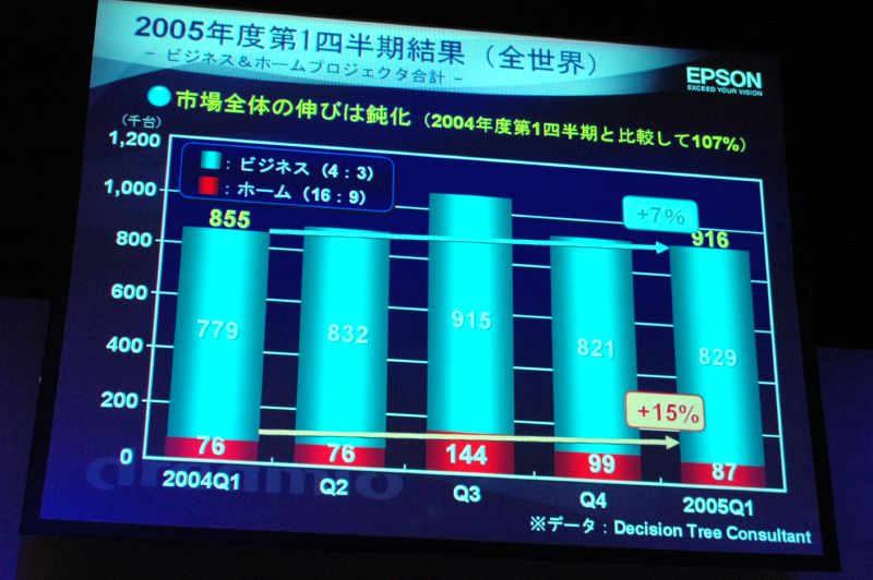 世界のプロジェクター市場の推移。04年度のQ1と05年度のQ1では、あまり市場が拡大していない