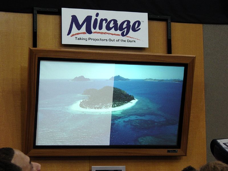 HOME > ニュース > AV&ホームシアターニュース [CEDIA EXPO 2005レポート]2層構造で明所での画質を大幅に改善したスクリーン 2005年09月12日 前の写真へ 明所でも高い視認性を確保 前の写真へ この写真の記事へ 関連リンク Phile-web「CEDIA EXPO USA レポ-ト」 CEDIA EXPOオフィシャルサイト
