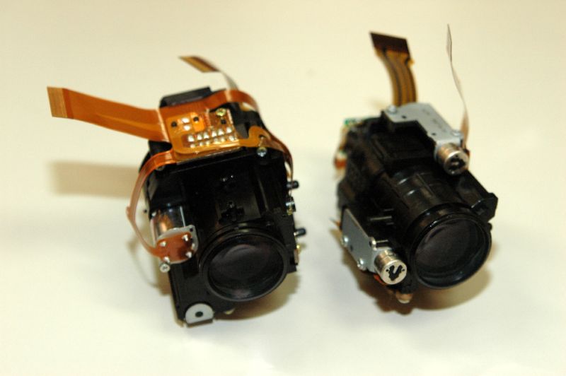 光学レンズユニットも小型化。左がGS250のもの、右がSDカードムービーのもの