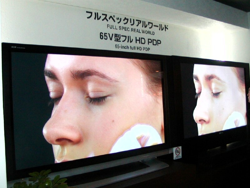 HOME > ニュース > AV&ホームシアターニュース [CEATEC2005:次世代PDP開発センター] フルHDパネルがズラリ/消費電力を半分以下にする新技術 2005年10月04日 前の写真へ 次の写真へ 65V型のパネルは液晶との比較展示を行っていた 前の写真へ 次の写真へ この写真の記事へ 関連リンク 会場からの速報レポ-ト一覧 Phile-web CEATEC JAPAN 2005 特設ペ-ジ CEATEC JAPAN 2005 オフィシャルサイト