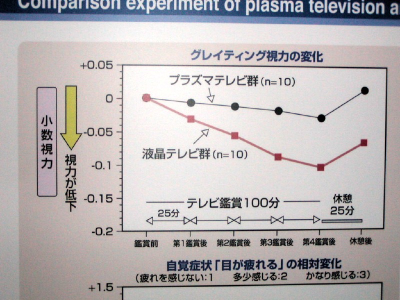 HOME > ニュース > AV&ホームシアターニュース [CEATEC2005:次世代PDP開発センター] フルHDパネルがズラリ/消費電力を半分以下にする新技術 2005年10月04日 前の写真へ 大阪教育大学人間行動学の高橋誠教授が実施したグレイティング視力測定実験の結果 前の写真へ この写真の記事へ 関連リンク 会場からの速報レポ-ト一覧 Phile-web CEATEC JAPAN 2005 特設ペ-ジ CEATEC JAPAN 2005 オフィシャルサイト