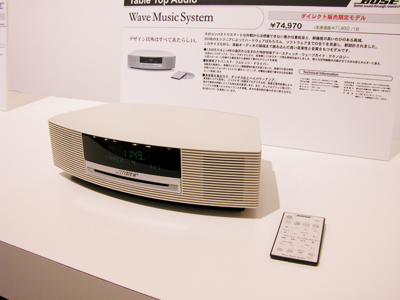 HOME > ニュース > AV&ホームシアターニュース [CEATEC2005:ボーズ] ダイレクト販売モデルを含む豊富な商品群を展示 2005年10月04日 前の写真へ 次の写真へ Wave Music System 前の写真へ 次の写真へ この写真の記事へ 関連リンク 会場からの速報レポート一覧 Phile-web CEATEC JAPAN 2005 特設ペ-ジ CEATEC JAPAN 2005 オフィシャルサイト