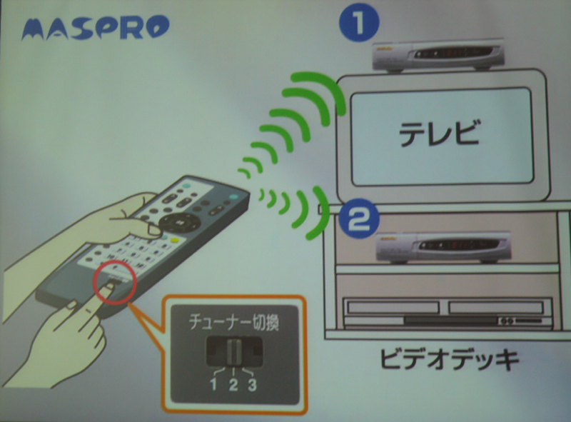HOME > ニュース > AV&ホームシアターニュース [CEATEC2005:マスプロ] 1億台のアナログテレビ市場にフィットさせる自社製デジタルチューナーを開発 2005年10月05日 前の写真へ リモコンコードが3つ設定できるので、誤操作を防げる 前の写真へ この写真の記事へ 関連リンク 会場からの速報レポート一覧 Phile-web CEATEC JAPAN 2005 特設ペ-ジ CEATEC JAPAN 2005 オフィシャルサイト