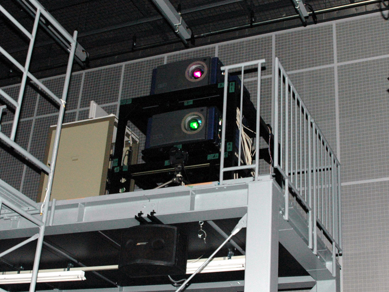 スーパーハイビジョン映像は2台のプロジェクターの投射光を重ねて表示する