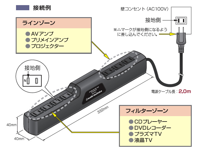 オーディオテクニカ、2種類のノイズ減衰フィルターを搭載した電源タップを発売