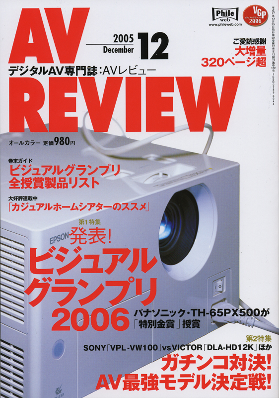 HOME > ニュース > AV&ホームシアターニュース いよいよあと2日。ビジュアルグランプリ2006発表! 2005年11月15日 月刊AV REVIEW12月号は11月17日発売です この写真の記事へ 関連リンク 「ビジュアルグランプリ2006特設サイト」 月刊AVレビュー編集部