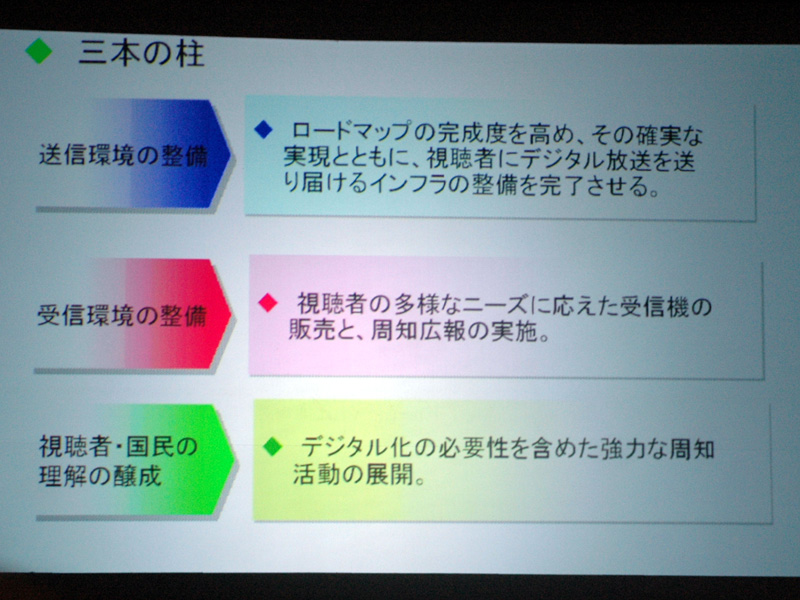 HOME > ニュース > AV&ホームシアターニュース 地デジ2周年〜今日から東京タワーがフルパワー&東北で放送開始 2005年12月01日 前の写真へ 次の写真へ 第6次行動計画の3本の柱 前の写真へ 次の写真へ この写真の記事へ 関連リンク 社団法人 地上デジタル放送推進委員会(D-PA)