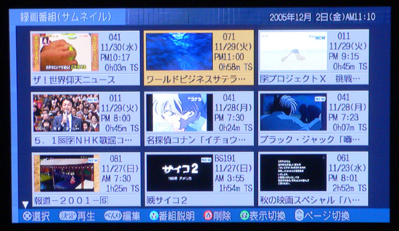 録画した番組はリモコンの「録画番組」から呼び出せる。タイトル入りで一覧表示でき、番組を選ぶだけで再生が始まる