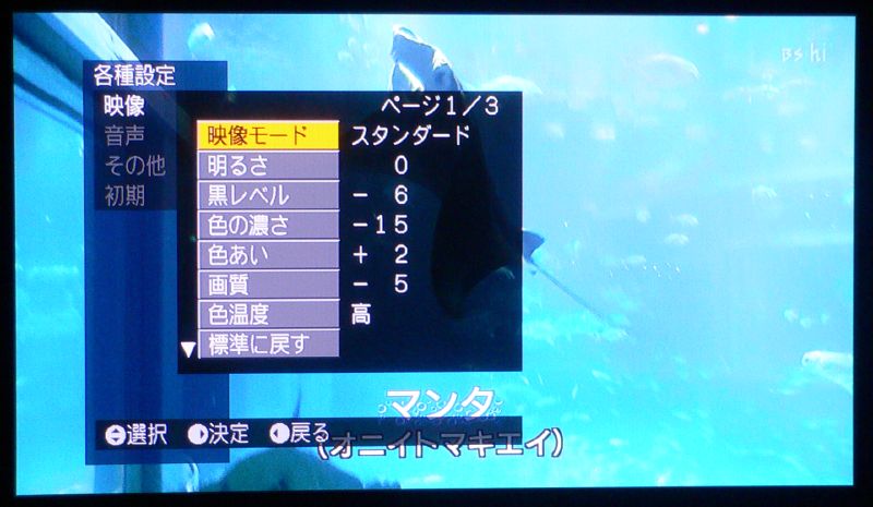 「スタンダード」の画質モードは一般的なテレビ向けの設定だ。写真は今回カスタマイズした設定だ。