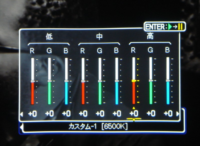 色温度は低/中/高のRGBを各±32ステップで選択できる