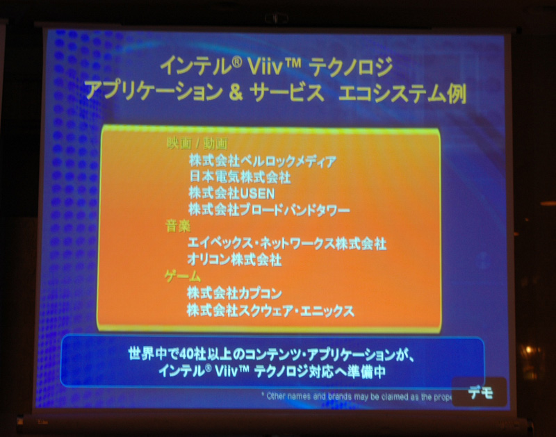 世界中で40社以上のコンテンツ・アプリケーションがインテルViivテクノジーへの対応を準備している