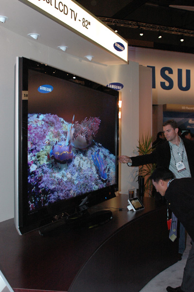 HOME > ニュース > AV&ホームシアターニュース <CES 2006 レポート>BD製品に力を入れるSAMSUNGブース BDドライブは4月発売 2006年01月07日 前の写真へ 次の写真へ 82インチの液晶テレビ 前の写真へ 次の写真へ この写真の記事へ 関連リンク Phile-web「CES2006レポート」 2006 International CES公式サイト
