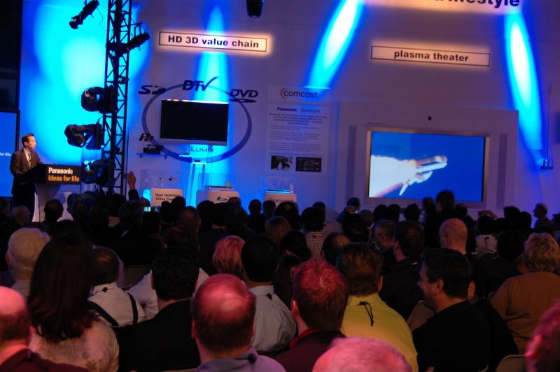 松下電器のプレスカンファレンスでは103型のプラズマテレビが最大の注目を集めた