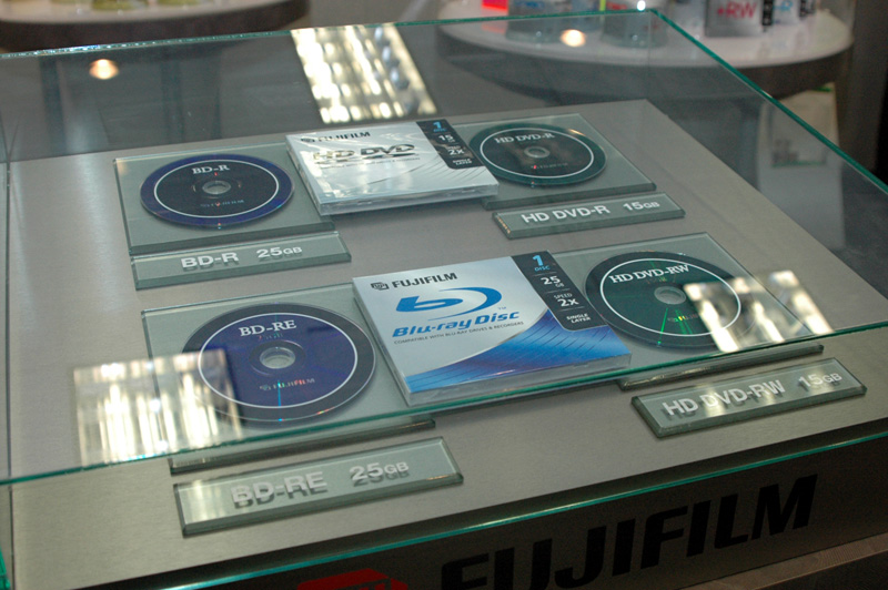 FUJI FILMはBD-R/RE、HD DVD-R/RWを展示。全てシングルレイヤーだ