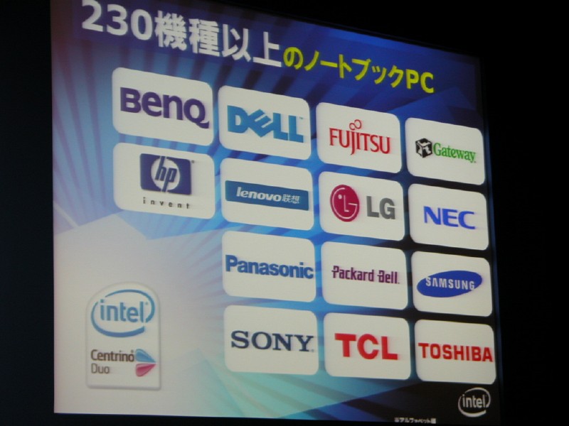 インテルの「Centrino Duo」の搭載を予定しているノートPCパートナー
