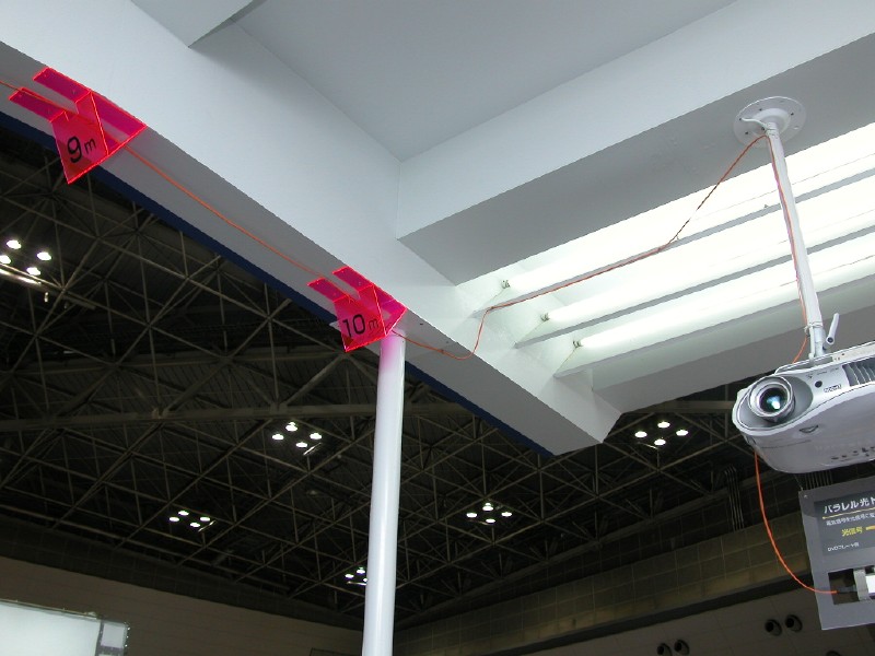 プレーヤーからプロジェクターの間はおよそ10mの距離を設け、画質劣化のない鮮明な映像をアピールする