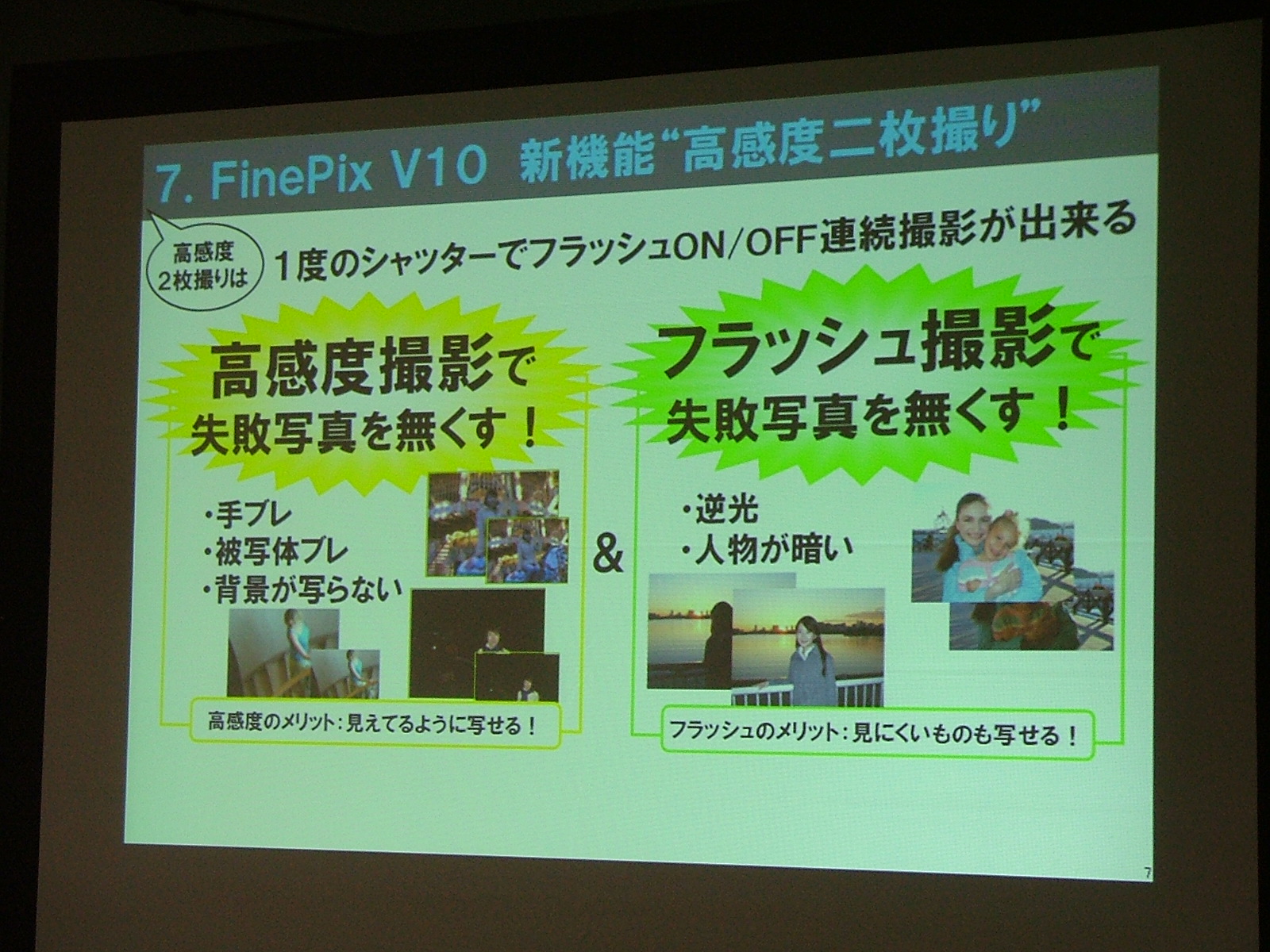 HOME > ニュース > AV&ホームシアターニュース 富士フイルム「FinePix高感度シリーズ」に第3弾「V10」登場 2006年01月26日 前の写真へ 「高感度2枚撮り」のメリットをアピール。撮影の失敗を防ぐとともに、同一シーンで雰囲気の違う写真を楽しめる 前の写真へ この写真の記事へ 関連リンク ニュースリリース(V10) ニュースリリース(A500)