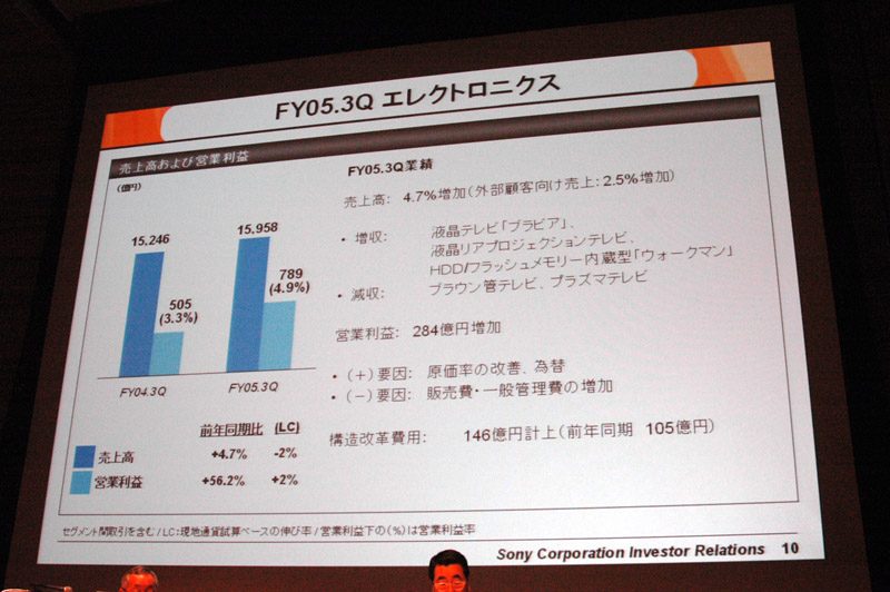 ソニー、2005年第3四半期の連結業績を発表 − 売上は過去最高、BRAVIAも好調