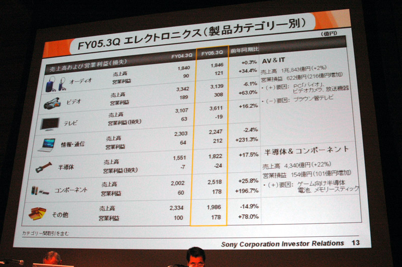ソニー、2005年第3四半期の連結業績を発表 − 売上は過去最高、BRAVIAも好調