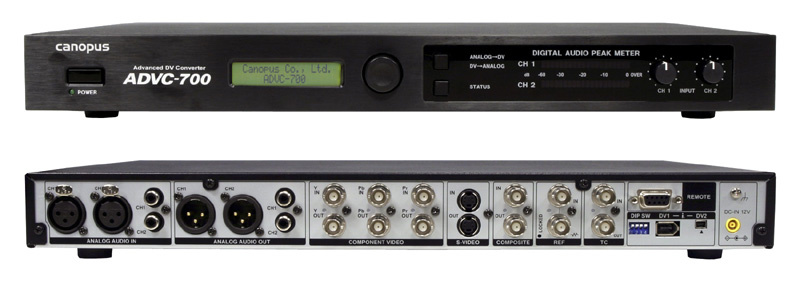 HOME > ニュース > AV&ホームシアターニュース カノープス、業務用アナログ-DVコンバーターの新モデルを発売 2006年01月27日 前の写真へ 前面パネルと背面端子部 前の写真へ この写真の記事へ 関連リンク 本製品のニュースリリース 「ADVC-700」の詳細