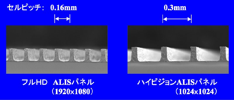 これまでのALISパネル(右)とフルHDパネル(左)のセルピッチの比較
