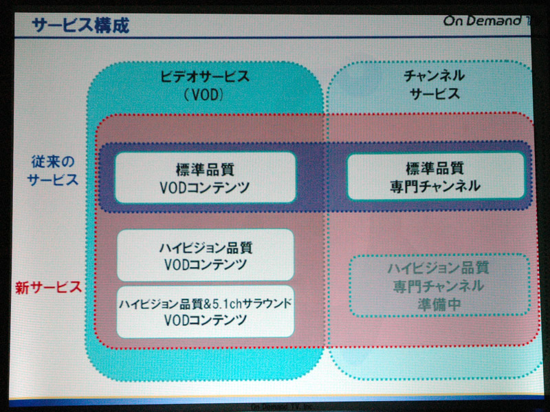HOME > ニュース > AV&ホームシアターニュース オンデマンドTV、6月よりハイビジョンコンテンツの配信を開始 − 年内500本に 2006年03月02日 前の写真へ 次の写真へ サービス概要 前の写真へ 次の写真へ この写真の記事へ 関連リンク 本件のニュースリリース オンデマンドTV 開始時のPhile-webニュース