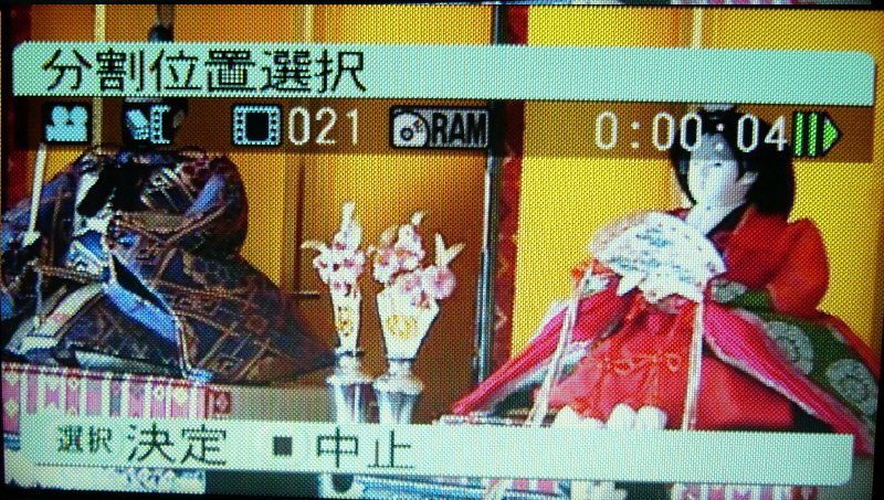 映像シーンを分割する際は、コマ送りで再生しながらポイントが探し出せるのがいい。「画面表示」ボタンを押してタイムコードなどを表示させると、ポイントがつかみやすくなる