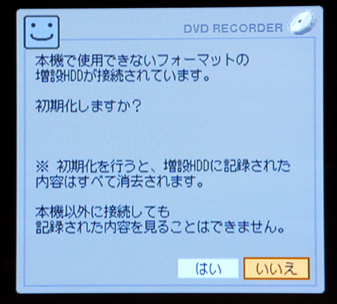 HDD-S250内のHDDを換装すると上画面のようなアラートが表示される