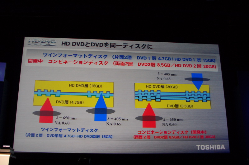 HD DVDとDVDを同一ディスクに収めるツインフォーマットディスクとコンビネーションディスクも用意する