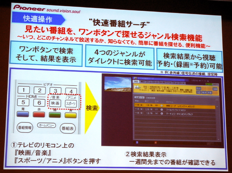 1ボタンで好みのジャンルの番組一覧を表示できる「快速番組サーチ」