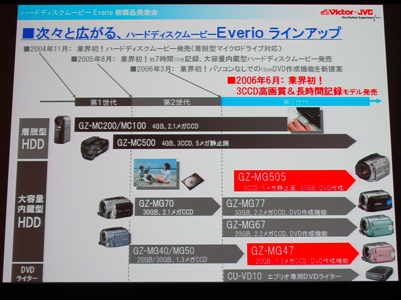 ビクター、“Everio”のHDD内蔵型3CCDモデルとエントリーモデルを発売
