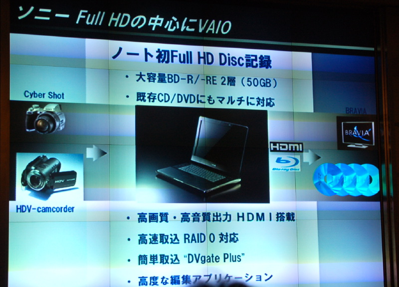 ソニー、世界初のBDドライブ内蔵ノートPCなど発売 − BD-ROM再生/地デジのムーブも可能