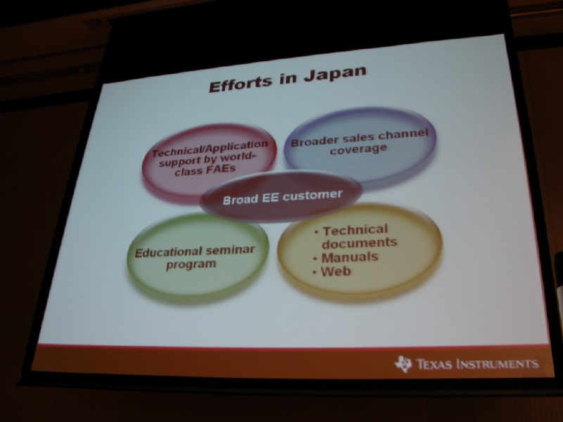 HOME > ニュース > AV&ホームシアターニュース 成長のカギは顧客中心の視点 − TIがアナログIC事業戦略説明会を開催 2006年05月18日 前の写真へ 次の写真へ TIの日本国内での取り組み 前の写真へ 次の写真へ この写真の記事へ 関連リンク 日本テキサス・インスツルメンツ