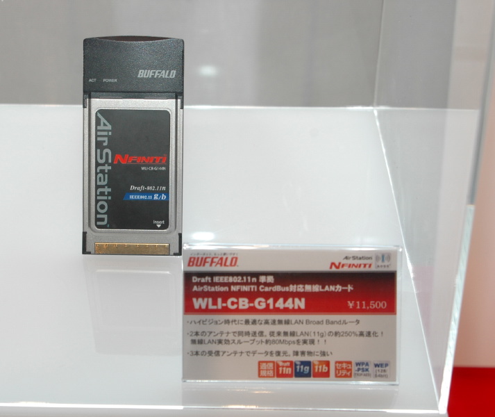 HOME > ニュース > AV&ホームシアターニュース バッファロー、HD映像3本を同時に伝送できる無線LAN機器「NFINITI」を発売 2006年06月05日 前の写真へ 次の写真へ 無線LANカード「WLI-CB-G144N」 前の写真へ 次の写真へ この写真の記事へ 関連リンク 本製品のニュースリリース
