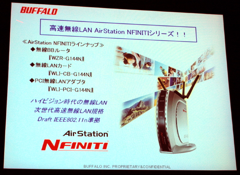 HOME > ニュース > AV&ホームシアターニュース バッファロー、HD映像3本を同時に伝送できる無線LAN機器「NFINITI」を発売 2006年06月05日 前の写真へ 次の写真へ NFINITIシリーズの概要 前の写真へ 次の写真へ この写真の記事へ 関連リンク 本製品のニュースリリース