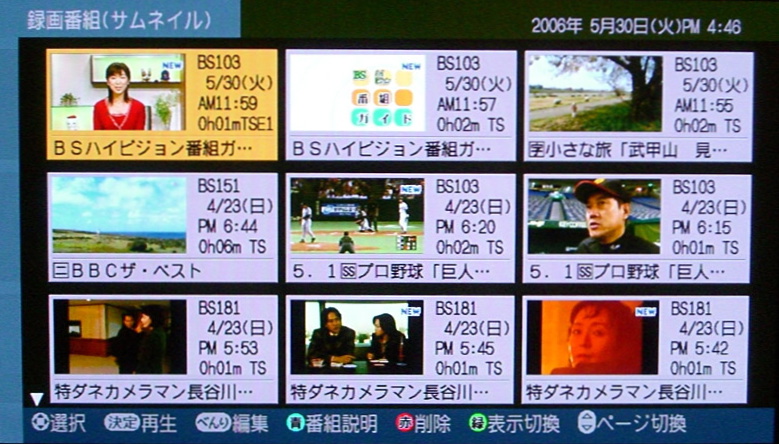 録画したタイトルの再生は、DVDレコーダーの「ディスクナビゲーション」と同じ、サムネイルつきの再生リストから選んで行う