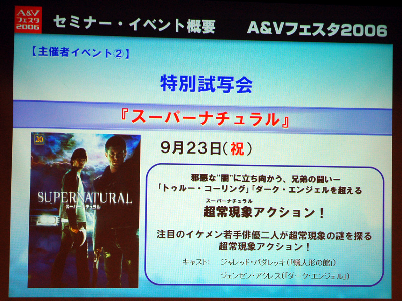 HOME > ニュース > AV&ホームシアターニュース テーマは“感動!それぞれのA&Vスタイル”− A&Vフェスタ2006 開催概要発表 2006年07月05日 前の写真へ 試写イベントは初の試み 前の写真へ この写真の記事へ 関連リンク A&Vフェスタ2006 オフィシャルサイト