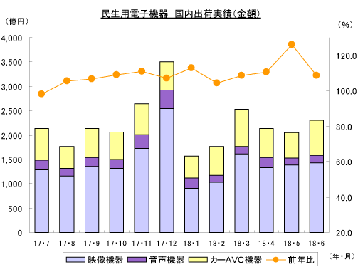 昨年7月からの民生用電子機器出荷金額を示したグラフ