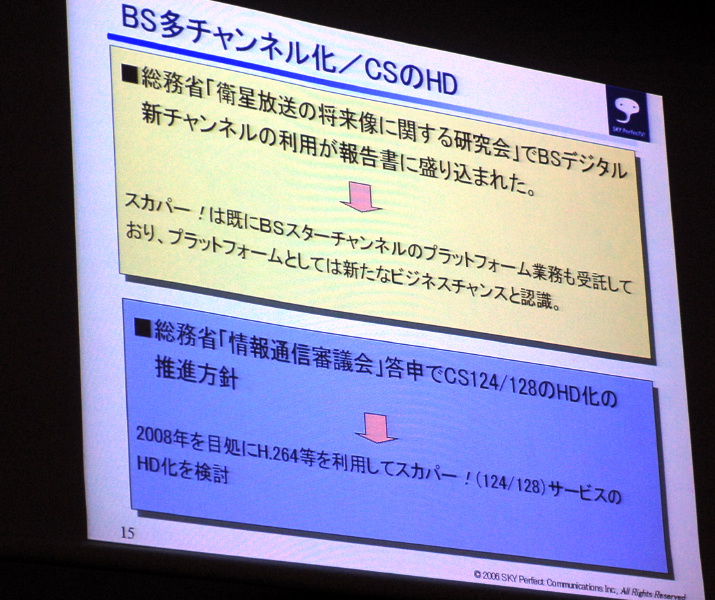 - スカパー!、124/128度CSで08年度にH.264のHD放送を検討 2006/05/16