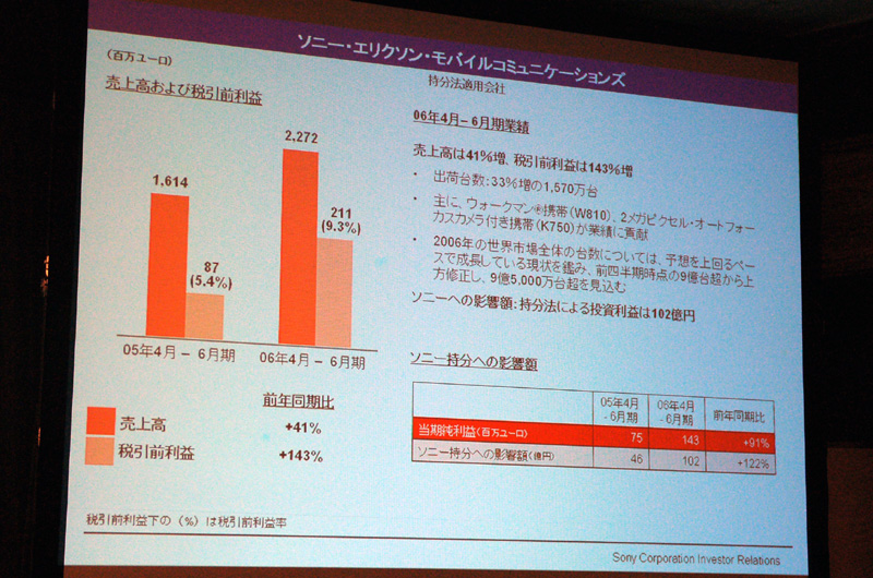ソニー、2006年第1四半期の連結業績を発表 − BRAVIA、α、ケータイが好調