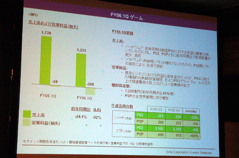 ソニー、2006年第1四半期の連結業績を発表 − BRAVIA、α、ケータイが好調
