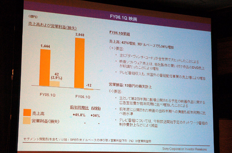 ソニー、2006年第1四半期の連結業績を発表 − BRAVIA、α、ケータイが好調